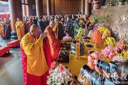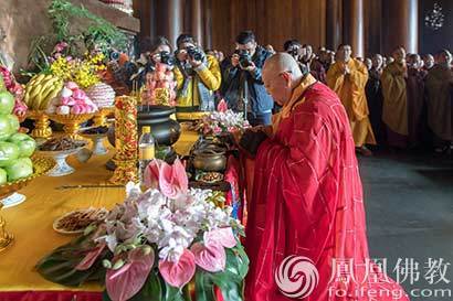 慧明大和尚和照诚大和尚拈香礼佛(图片来源:凤凰佛教)
