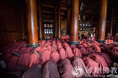 新戒大殿礼佛(图片来源:凤凰佛教)