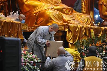 装藏阶段(图片来源:凤凰佛教 摄影:东林寺)
