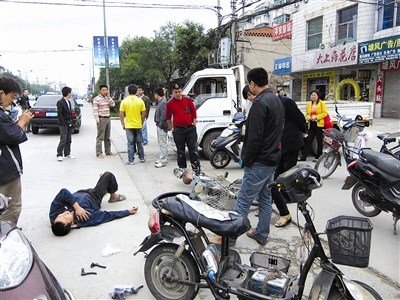 伤者被十多个看客围观