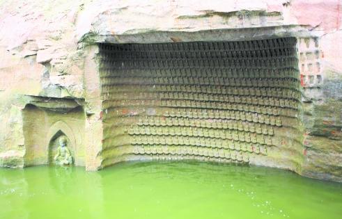 既然是文物,为何任其放置?眉山市全国文物普查领导小组办公室副主任张志刚告诉记者,文物部门经过论证之后,决定让千佛岩的佛像泡在水中,此举是较为妥善的保存方式,泡在水中虽说要被水侵蚀,但比起裸露在外的自然风化而言,损失则小很多。(图、文:刘忠俊 蒋麟)