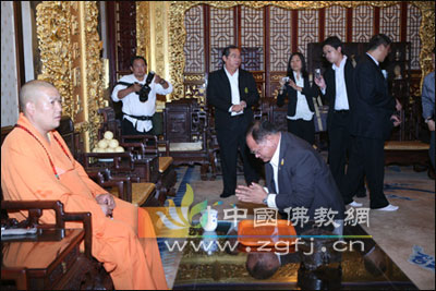 2009年9月4日下午泰国农业部长率团一行三十人前来灵光寺参拜佛牙舍利,受到常藏大和尚热情接待,并赠送礼品。(稿源:灵光寺)