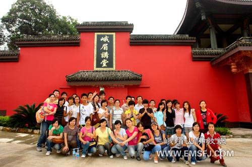 部分师生在峨眉讲堂前欢喜合影