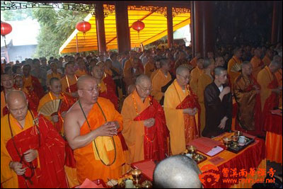开光大法会历时二小时余,值此法会,南华禅寺与海内外大德共礼佛会;在祖国即将迎来建国60年大庆之际,同愿盛世中国祈福纳祥。佛光普照、普度众生、功德无量。以此功德,众法师长老做了最广泛的回向,回向无量众生共证菩提,回向国家繁荣昌盛,国泰民安,回向世界和平,人民安乐。