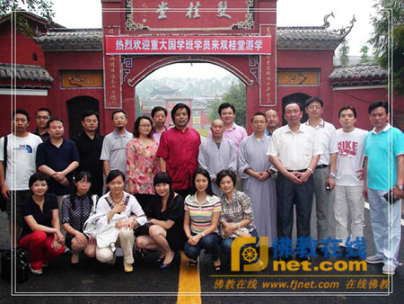 2009年9月19日下午4时,重庆大学国学高级研修班一、二期的学员到重庆梁平双桂堂参学,并在那里体验了一天一夜的“出家”清修生活。清修内容包括上早课、诵经、打坐、吃斋、普茶、听佛学讲座等。据悉,这些学员多是企业老总,其中还有80后的年轻老板。