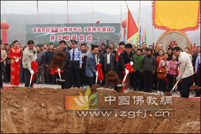 奠基现场 9月26日上午,白马寺山接待中心正式奠基开工。市长王茂设,市委常委、统战部长李治国,副市长贾联亭,市政协副主席贺贵元出席奠基仪式并为项目培土奠基。