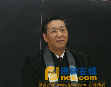 木村宣彰校长说,“知恩报恩”在佛教里是非常重要的,日本佛教从中国佛教学到很多东西,我今天怀着“知恩报恩”的心情来以个人微小的力量来报中国佛教的大恩、弘恩、来给大家讲课。随后,木村宣彰校长从缘起——佛教是什么,佛教的构成要素——归依三宝,中国佛教的特色——教相判释,重视慧学的佛教——天台与华严,禅宗、律宗与净土宗的成立,大乘菩萨戒的问题,在日本佛教中大乘戒坛的成立,在家佛教等方面为在场大众上了一堂生动形象的课程。木村宣彰校长将佛教从印度传到中国,在从中国传到日本的过程比喻成黄河从西向东的走向,赢得与会大众阵阵掌声。