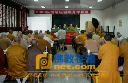 开学典礼上,市民宗局副局长蔡荣强调:一、要从提高增尼素质,改变绵阳市佛教界自身素质不高、人才滞后的问题上。党和政府对佛教界的要求上。新时代,社会发展的需要上认识这次僧尼培训班的重要性、必要性、紧迫性。二、广泛开展爱国主义教育,推进爱国宗教团体思想建设。三、全面开展创建和谐寺观教堂活动,推动活动场所的全面建设。四、抓好灾区宗教活动场所的恢复重建工作,搞好规划、搞好科学重建、务实重建、艰苦重建。五、提出了要安下心来,认真学习,领会精神,用于实践,为今后选拔、培养、使用人才打基础,为服务社会、服务众生增长才干的要求。