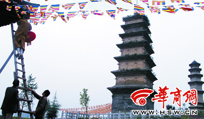 本报讯(记者陈静涛) 距今1300多年的佛教华严寺祖塔杜顺塔,由于受水土流失冲击,如今向西倾斜了25厘米;和该寺相临的澄观塔,将面临倒塌危险。据悉,一些信众捐资500万元,今起自发组织人力固坡护塔。
