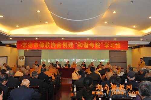 2009年10月20日,由湖南省常德市佛教协会举办的创建“和谐寺院”学习班开幕,湖南省宗教局一处唐子建处长、湖南省宗教局一处唐健科长、常德市民宗局黄功宽局长、常德市国保大队宗教处张为民处长,湖南省佛教协会会长圣辉法师出席。