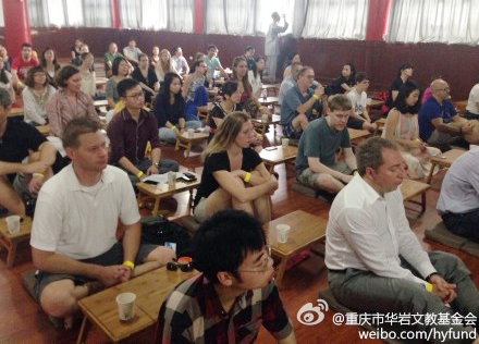 为推广佛教文化在重庆外籍人群中的知名度和影响力,以及丰富外籍人士业余文化生活,由重庆华岩寺方丈道坚法师发起,重庆市华岩文教基金会、重庆市外经贸委下属重庆市外商协会、重庆外商投资促进中心主办的端午节佛教文化英语沙龙活动于2014年6月2日(即农历五月初五,端午节)在华岩寺举办。