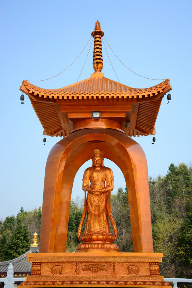 东林大佛台四大菩萨像贴金完工