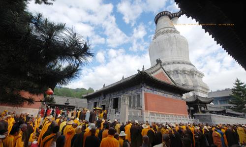 2014年6月10日,农历五月十三日,恭逢伽蓝菩萨圣诞,山西大塔院寺、镇海寺、大宝寺等多个寺院举行系列祈福祝圣法会。上午7时30分,大塔院寺内香烟袅绕、梵呗阵阵,五台山全山寺院僧众云集在塔院寺大慈延寿殿前隆重举行伽蓝菩萨圣诞祈福祝圣法会,塔院寺住持如空法师拈香主法,僧众虔诚讽诵经典,法会现场庄严殊胜。