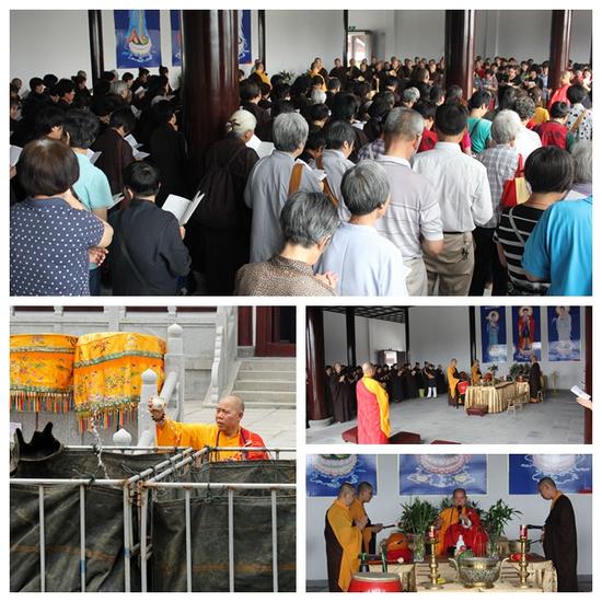 据悉,参加此次法会的四众弟子约500人左右,信众来自北京、上海、深圳等各个城市,还有特意从新加坡赶来参加活动的同修。于今日上午八点半左右,在弥陀寺住持上本下源大和尚主持下,由龙华寺上世下炫大和尚、联合国世界佛教青年僧协会秘书长上无下上大和尚、及盐城佛教协会副会长上慧下德大和尚主法,携领弥陀寺第五届短期出家200左右学员,在泰山寺大雄宝殿举行盛大托钵仪式。