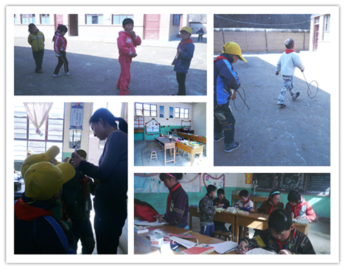 经过几小时的大巴转小巴,终于来到了会宁县的这所小学。小学里干净、整齐、有序。学校的操场有用石头摆得乒乓球桌、篮球架,操场的旁边有两排柏树,校长说:寓意着“百年树人”。我们到时有一个班正在操场上自习课。孩子们在认真的朗读着课文。