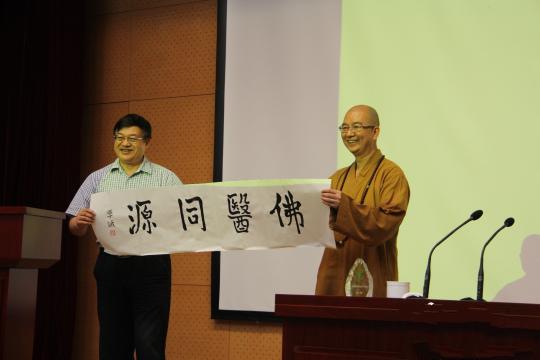 中国佛教协会副会长学诚法师17日下午应邀在中国中医科学院作《修身与修心》学术报告。