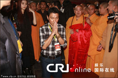 河南封登,当日电影《新少林寺》在河南登封少林寺正式举行开机仪式,主演成龙、刘德华、范冰冰、谢霆锋、吴京等出席。少林寺方丈释永信向韩三平、英皇老板杨受成、华谊兄弟老总王中磊授权。