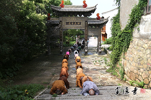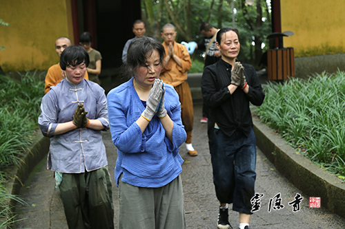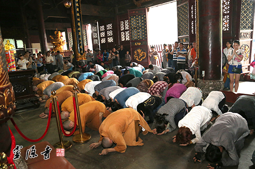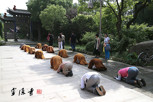 2014年7月2日上午,杭州灵隐寺方丈光泉大和尚率僧俗弟子及云林志工团义工们共50余人,怀着一颗虔诚心、感恩心,三步一拜朝拜普陀山。以虔诚的朝圣之行现身说法,再次向世人展现了四众弟子精进、正行、苦修、济生的形象。