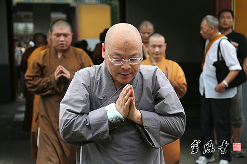 撩衣下拜的那一刻,大和尚甩掉了千年灵隐寺方丈的尊崇身份,融入到了僧俗弟子们一起。通身的汗渍,额头的淤青,虔诚的跪拜,坚定的身影……这一刻,他走下了神坛,他只是一个普通的出家人,一个虔诚的修行人。
