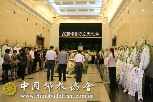 中国佛教协会特邀顾问、著名佛教学者、中国人民大学一级教授方立天先生因病医治无效,于2014年7月7日与世长辞。方立天先生遗体告别仪式于7月11日上午在北京八宝山革命公墓东礼堂举行。各个组织团体、兄弟院校师生、佛教界人士以及方立天教授好友等出席告别仪式,深切缅怀方立天教授。中国佛教协会副会长学诚法师代表中国佛教协会出席告别仪式,对方立天顾问去世表示哀悼,向其家属表示慰问,并敬献花圈。方立天先生逝世后,中国佛教协会和中国佛教协会会长传印长老发唁电对方立天教授逝世表示哀悼。