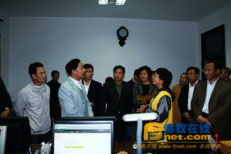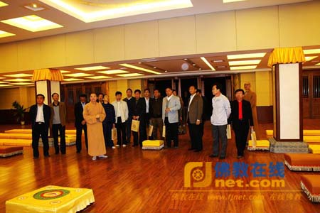 诸位领导在龙泉寺法师、义工的带领下参观了仁爱慈善基金会,博客书出版、DVD制作中心,龙泉之声网站以及寺院的各个建筑。随后学诚法师与各位领导亲切会谈,共享晚宴。