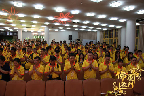 明光大和尚以释迦牟尼佛、玄奘大师为利益众生青年入道为例鼓励青年们要有不达目的绝不终止,这种马直地的精神。台湾新北市佛教会理事长明空法师,台湾童军会代表郭廷铭,厦门市青年联合会主席分别先后致辞。