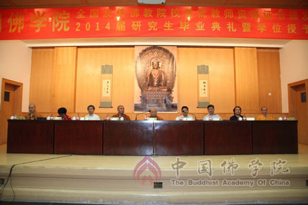 为推进中国佛教教育发展,规范佛教院校管理,加强佛教院教师队伍建设,提高教师素质和教育教学水平,根据国家宗教局宗教院校《宗教院校教师资格认定和职称评审聘任办法(试行)》和《宗教院校学位授予办法(试行)》(以下简称《两个办法》)的相关规定和要求,2014年7月19日下午,中国佛教协会教育委员会在中国佛学院大礼堂举行了中国佛学院首批教师资格证书及学位授予资格证书颁发仪式。