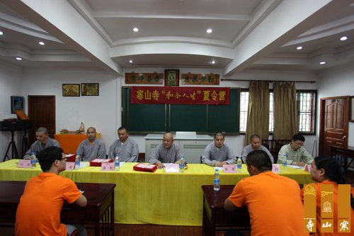 2014年7月26日上午9时,苏州寒山寺2014“和合人生”禅修夏令营圆满闭营。中国佛教协会常务理事、江苏省佛协副会长兼秘书长、寒山寺、重元寺方丈秋爽大和尚率领寒山寺法师,以及来自全国各地的在家佛教徒、在校大学生、佛学爱好者共40人名营员参加本次闭营仪式。