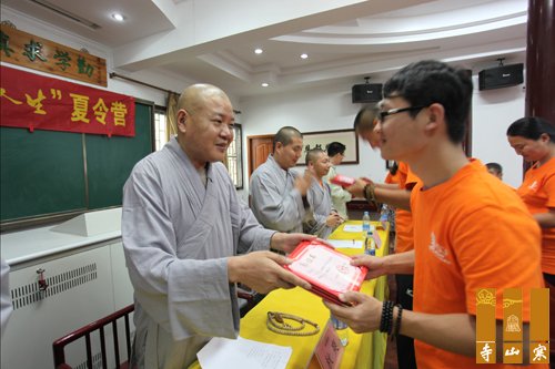 随后,秋爽大和尚及寒山寺法师为本届夏令营营员颁发结业证书,同时大和尚宣布本届寒山寺2014“和合人生”禅修夏令营圆满闭营。