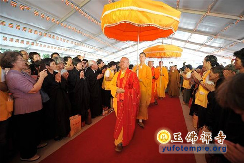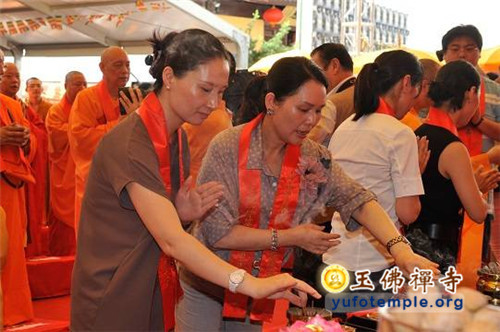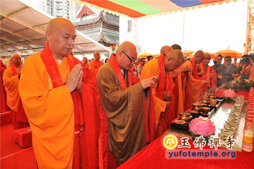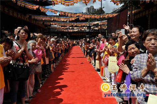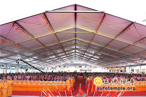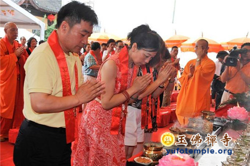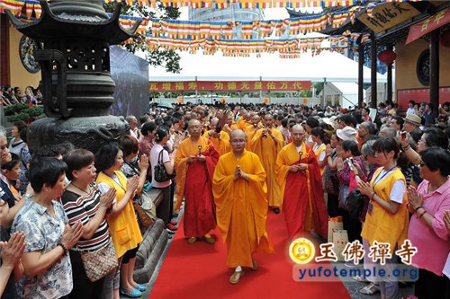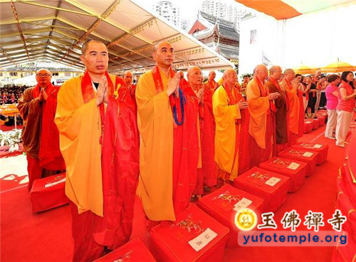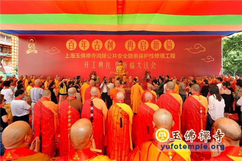 2014年7月31日上午,上海玉佛禅寺内人声鼎沸,热闹非凡。“百年古刹,再启新篇——上海玉佛禅寺消除公共安全隐患保护性修缮工程开工典礼暨祈福大法会”在玉佛禅寺内举行。来自各级政府的领导、全国各地诸山长老代表和寺院的护法居士、社会各界代表约一万余人参加了今天的开工典礼和祈福法会。今天的活动分两部分举行,首先举行洒净祈福法会,随后举行工程开工典礼。