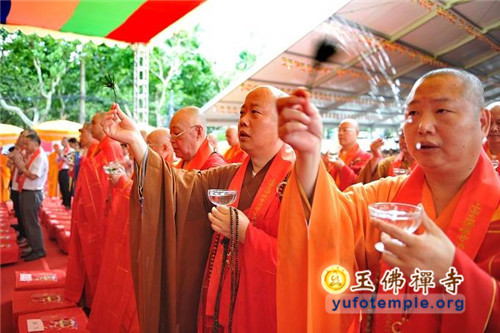 洒净祈福法会从上午10:00开始,来自全国各地的诸山长老代表17人在祜巴龙庄勐长老、心澄大和尚、道慈大和尚、松纯长老、无相长老、妙灵长老等的带领下,手持杨枝净水,沿寺院建筑场地绕行一圈,进行洒净祈福活动,祈愿诸佛加被,龙天护佑,玉佛禅寺保护性修缮工程能顺利完成,同时也祈愿玉佛禅寺的道场更加庄严兴盛。