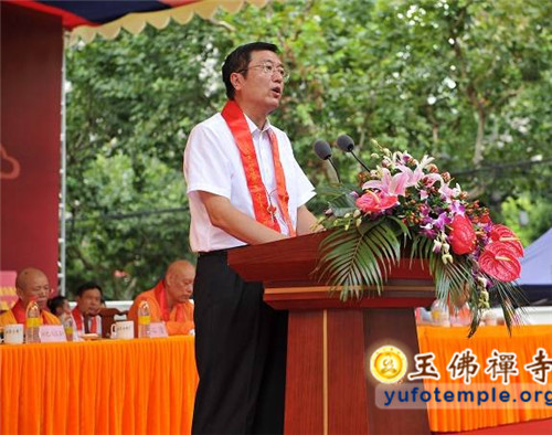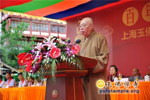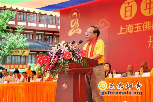 接下来在居士代表和诸山长老代表的发言中,对玉佛禅寺消除安全隐患的修缮工程都给予积极肯定和热情的支持。随后上海市普陀区委常委、区统战部长黄海平和中国佛教协会张琳副秘书长分别代表区政府和中国佛教协会发言,对玉佛禅寺的消除安全隐患工程表示积极的支持,并希望寺院做好工程建设与继续保持对外开放之间的工作,保证安全,满足信徒宗教生活的需求,继续做好和谐寺观教堂的创建和文明宗教场所的建设工作。张琳副秘书长还向寺院转赠了中国佛教协会会长传印长老专门为寺院工程的题词墨宝——“玉佛百年,再启新篇”。