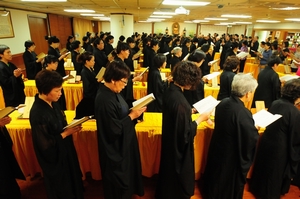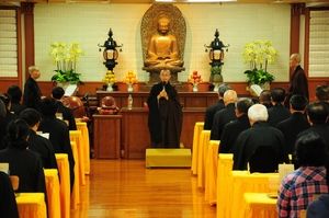 法鼓山台南分院于4日举办洒净仪式,监院果谦法师向在场信众表示,依佛教的观点,农历七月是教孝月、报恩月,以教育的立场,正是报答亲恩、追思先祖的最佳时刻;《地藏菩萨本愿经》中提到,释迦牟尼佛到仞利天为母亲说