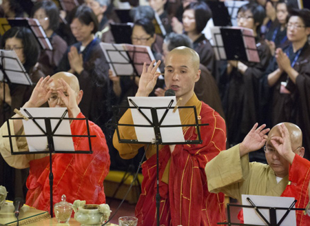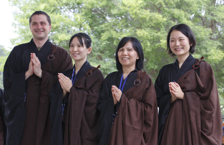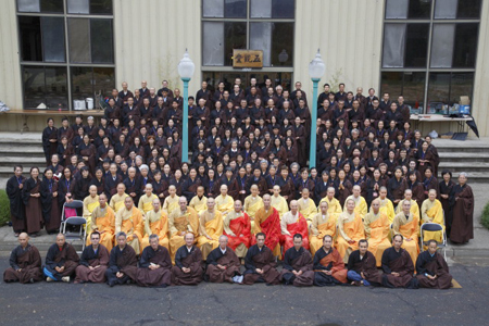 美国万佛圣城于2014年8月5日下午2时传授六重二十八轻在家菩萨戒,仪式非常庄严隆重,在钟鼓齐鸣中,戒子们至诚恳切地迎请恒律法师、恒山法师、近永法师主持传戒法会,共有207位戒子圆满受戒。