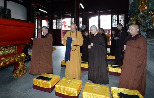 2014年8月11日、农历甲午年七月十六,遵循佛教丛林传统规制,普陀山佛协会长道慈大和尚先后前往福泉禅林、法雨禅寺、祥慧净院、紫竹林,为新请监院、副监院送位。