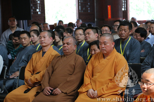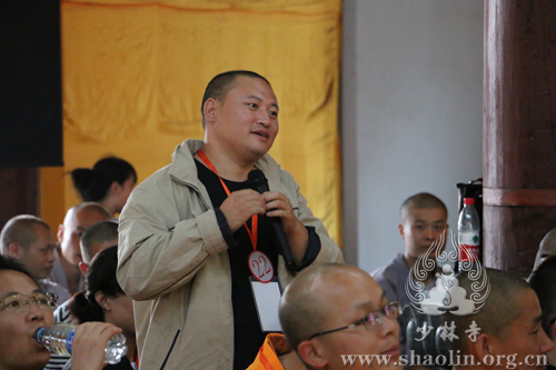 永信方丈开示道:“这次的少林问禅活动很圆满,我们也很高兴。少林寺不断通过举办这样一些活动,就是要与社会互动,扩大禅法的影响力。问禅这几天有不少法师和信徒问我一些辩题,我鼓励他们到现场去学、去参。到现场能听懂一句两句,就能终生受益。我说,我供养大家一个字,“装”字。人要衣装,佛要金装。装是一个大学问,文化就是从外向里、借假修真。人的一生,只要会装,能装上几年、几十年、一百年,能装得表里如一、如如不动,也就成就了。修行是这样,为人处事也是这样。古今中外,那些成功人士哪个不是装出来的呢?只要能装得好,装得像,就能有大成绩,大成就。这也是一种智慧,‘装’的智慧。其实,我们修行的过程也是‘装’的过程,能装上几十年,一定能有所成就,有所受益。少林文化主要有禅武医艺四个方面,少林寺将会在这四个方面举办更多的活动,与大家互动交流,让大家受益。少林寺也一直在这几个方面努力,比如禅方面,我们目前有四个途径来弘扬和发展,一是少林寺禅堂,每年冬季举办‘禅七法会’,为全国各地的禅和子提供修行的道场;二是少林寺都市禅堂,为城市的民众提供修行参悟的场所;三是禅修营,为短期禅修体验的人们提供一日禅修、三日禅修、七日禅修等方便法门;四是我们自2006年开始举办的少林问禅活动,为全国各地的佛子们提供学修的平台。少林问禅属于般若智慧竞赛,将来在适当的时候,我们还要举行体能竞赛,将面向世界,在少林寺举办一个世界武林大会,到时会有很多武术高手和禅修高手莅临,包括等不同的武林门派,都在一起相互切磋交流。内容上,包括套路(拳法,兵器,单练,对练,集体)、功法(各种绝技,比如少林七十二绝技)、散手(空手道、跆拳道、泰拳、西洋拳、散打);还有武学论坛等。少林寺希望通过各种各样的活动,与大家结缘,扩大佛教的影响,提高少林文化的知名度。机锋辨禅一年比一年精彩,明年的十周年活动,我们会邀请一些资深的出家众、在家众参与,看看以什么样的形式进行,是沿袭现在的机锋辨禅形式,还是一对一的交流,我们再探讨。到时候,不少机锋能成为公案,能够让后学受益、受用。我们会坚持开放的心态,为大家提供修学的平台,助力于大家学修并重,精进修行。”