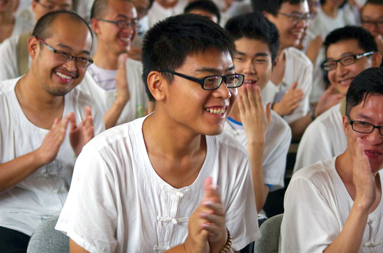 在始终微笑着专注地听完每一位代表的发言后,明基大和尚说,“表面上看好像是寺院在为大家服务,但其实同学们也在教育着我们,让我们深受触动和提升。”明基大和尚殷切叮嘱说,七天的夏令营,相信每一位同修都有自己的收获,关键是离开寺院后,如何让这种充满正能量的状态延续?他提醒大家一定要勇猛精进,在生活中修行,在修行中生活,要给自己制订学习和修行计划,尤其是每天早晚都要有定课,“如果没有早晚定课、集体共修及自修,连出家人也很难转化贪嗔痴的习气,何况大家呢?”