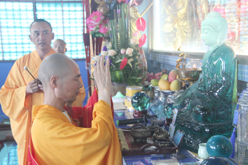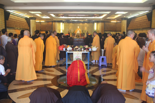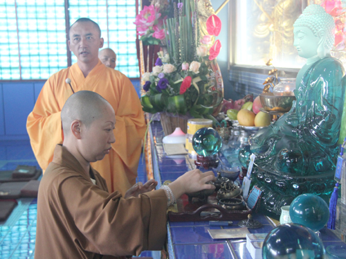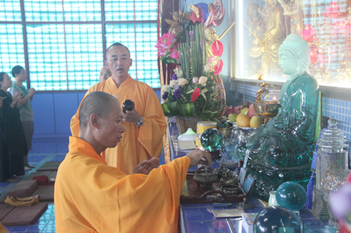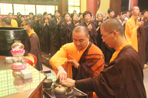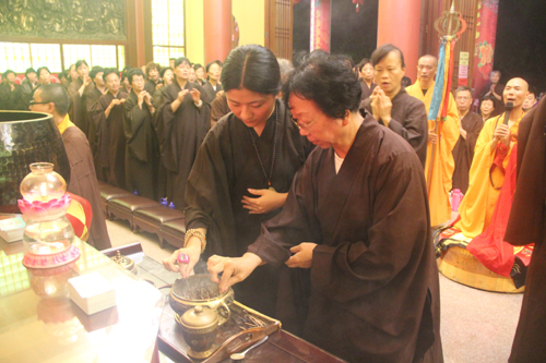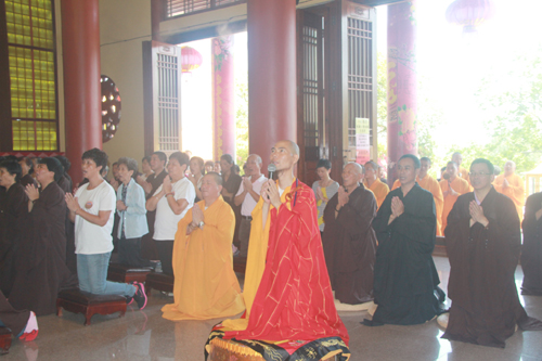 2014年8月24日上午10时,时值地藏王菩萨圣诞日,同时也是本寺举行地藏菩萨昼夜精进七圆满日。上午10时,礼请石室禅院住持忠明法师主法,并先后率众至琉璃宝塔和地藏殿内敬香上供。随后,下午13时在药师密坛内举行皈依仪式。