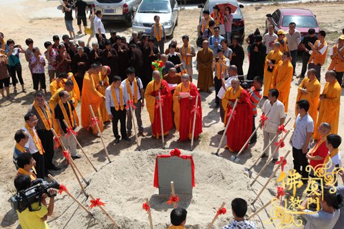 市民宗局沈仲勇处长出席奠基庆典,并与嘉宾一起启动奠基仪式。省佛协副会长、市佛协会长、南普陀寺方丈则悟大和尚,同安区佛协常务副会长、梵天寺住持仁慈法师,报恩寺住持开登法师为奠基仪式主法,绕整个道场洒净,挥锹培土。祈愿佛光普照,报恩寺顺利建成众人乐归的祥和宝地、报恩道场。