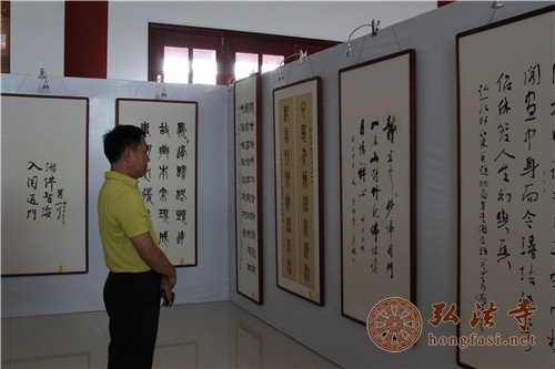 出席今天开幕式的领导和嘉宾有:海南省政协副主席、海南省政协书画院名誉院长陈成,海南省政协副主席、省委统战部部长、中国书法家协会理事、海南省政协书画院院长王应际,海南省政协常委、中国书协副主席、海南省书协主席、省政协书画院执行副院长吴东民同志,海南省政协常委、中国传统文化纸墨艺术学会会长、省政协书画院执行副院长李福顺,三亚市政协主席赵普选,中国佛教协会副会长、江苏省佛教协会会长、镇江金山江天禅寺方丈心澄大和尚,中国佛教协会副会长、湖北省佛教协会会长、五祖寺方丈正慈大和尚,海南省政协常委、中国佛教协会副会长、海南省佛教协会会长、三亚南山寺方丈印顺大和尚,中国佛教协会副秘书长宗家顺先生,中国佛教协会副秘书长、北京广济寺方丈演觉大和尚,江苏省佛教协会副会长、扬州市佛教协会会长、扬州市大明寺方丈能修大和尚,中国佛教协会办公室主任刘宇,中国佛教协会国际部主任普正法师,中国佛教协会寺庙工作办公室主任清远法师,安徽鬲山禅寺方丈印修大和尚,三亚市政协副主席张羽非,三亚市政协副主席庄琼菊,三亚市统战部副部长黄明崇,三亚市民宗委主任王伟武,三亚市民宗委副主任陈昶,南山管委办主任何鹏程,南山旅游开发公司总裁关鹏,南山旅游发展公司总经理、观音苑公司总裁周天翔。