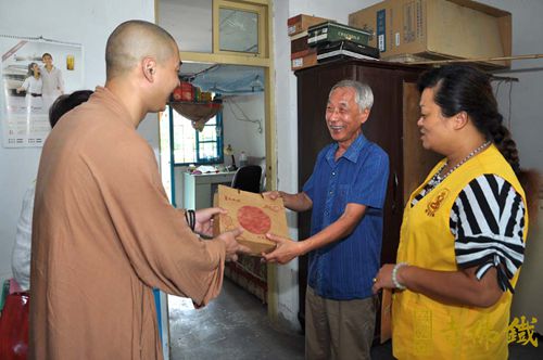 月到中秋分外明,每逢佳节倍思亲。一年一度的传统佳节——中秋节即将来临,铁佛寺每年都在中秋节即将来临之际,给社会需要关爱的人送去一份爱的祝福。2014年9月2日,铁佛寺普觉慈爱义工带着铁佛寺的净素月饼慰问敬老院老人、儿童和残障人士,再次展现了佛教义工走入社会,以“人间佛教”的慈悲精神,传递社会正能量。