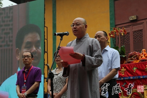 开幕式由允观法师主持,光泉法师和倪忠扬副主任分别代表省佛教协会和省宗教行政管理部门致辞。