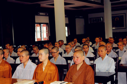 参加开学典礼的法师和同学们