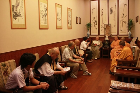 2014年9月11日上午,日本临济宗妙心寺派德源寺住持岭兴岳长老朝礼祖庭河北赵县柏林禅寺,受到柏林禅寺方丈明海法师与监院利生法师的热情接待。