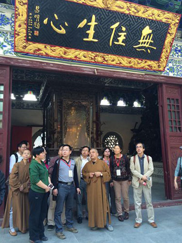 2014年10月20日上午,参加武汉大学“佛教文献文学学术会”的40余名学者,在四祖寺监院崇谛法师的带领下,专程前往湖北黄梅五祖寺参访。