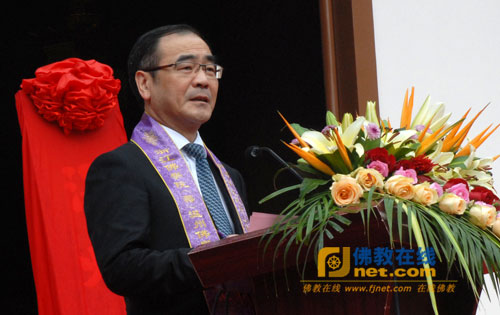 浙江省委统战部副部长、省民宗委主任冯志礼先生作重要讲话。冯志礼副部长说:浙江佛学院(筹)温州佛学院得以成功申办、安福寺得以重建,这是我省佛教界立足长远、筹谋未来的重大举措,必将为我省佛教事业发展注入新的活力、带来新的契机。