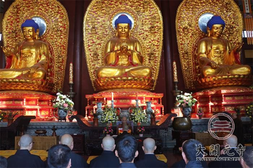 碧空如洗,冬阳高照,磬声阵阵,佛音袅袅,13位短期出家参加者跟着监院崇悲法师迎请明憨法师主法。明憨法师主持了受清净五戒和剃度仪式,并开示道:人身难得,佛法难闻,出家更是难上加难。王秋生等8人,在大开元寺做一段时间义工后,因个人因缘条件不同,暂时不能长期出家,发心参加短期出家。出家功德不可言说,佛经讲出家一日一夜的功德就可以在未来得辟支佛身。今天我们大开元寺常住为他们举行剃度和受清净五戒仪式,希望大家都能发心精进,学习佛法。