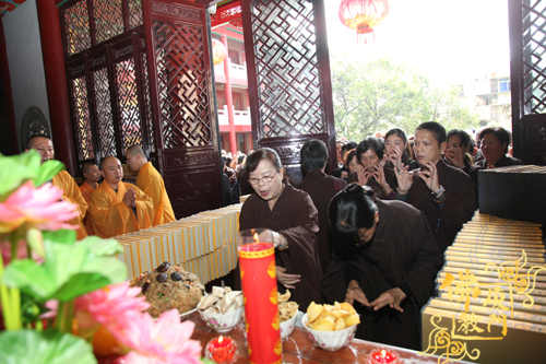 2014年11月20日上午,由福建省厦门市思明区佛教协会秘书长、碧山岩寺监院月妙法师主法,带领信众恭请大藏经进藏经楼供养。大众头顶礼拜、身心欢喜,祈愿国泰民安、正法久住。