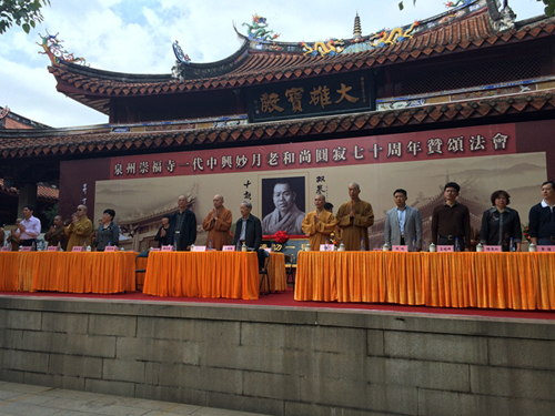 2014年11月29日上午,福建泉州崇福寺一代中兴妙月老和尚圆寂七十周年赞颂法会在泉州举行,数百位信众参加此次赞颂法会。