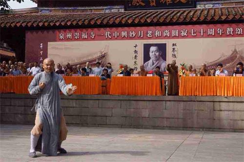 赞颂法会上,多名习武爱好者以及来自泉州南少林寺的武僧们还现场进行了多样式的武术表演。(图、文:沈何 振闻)